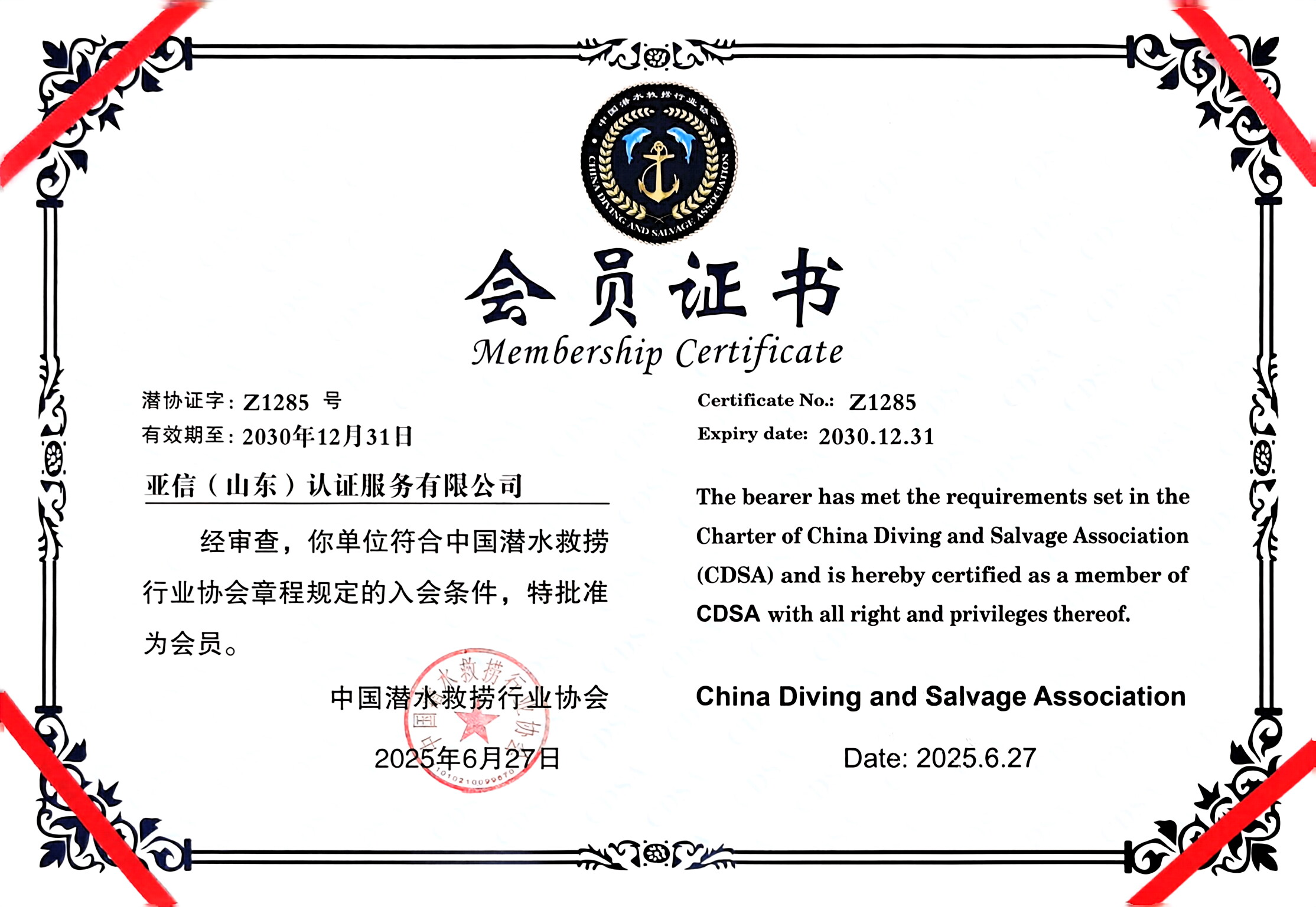 2025年6月27日,经中国潜水救捞行业协会严格评审,亚信(山东)认证服务有限公司(以下简称“CICA”)近日成功获批会员证书。这一权威资质的获得,是对亚信认证在管理体系认证领域长期坚持“高标准、严要求”的高度肯定,标志着公司专业能力已跻身行业领先水平。