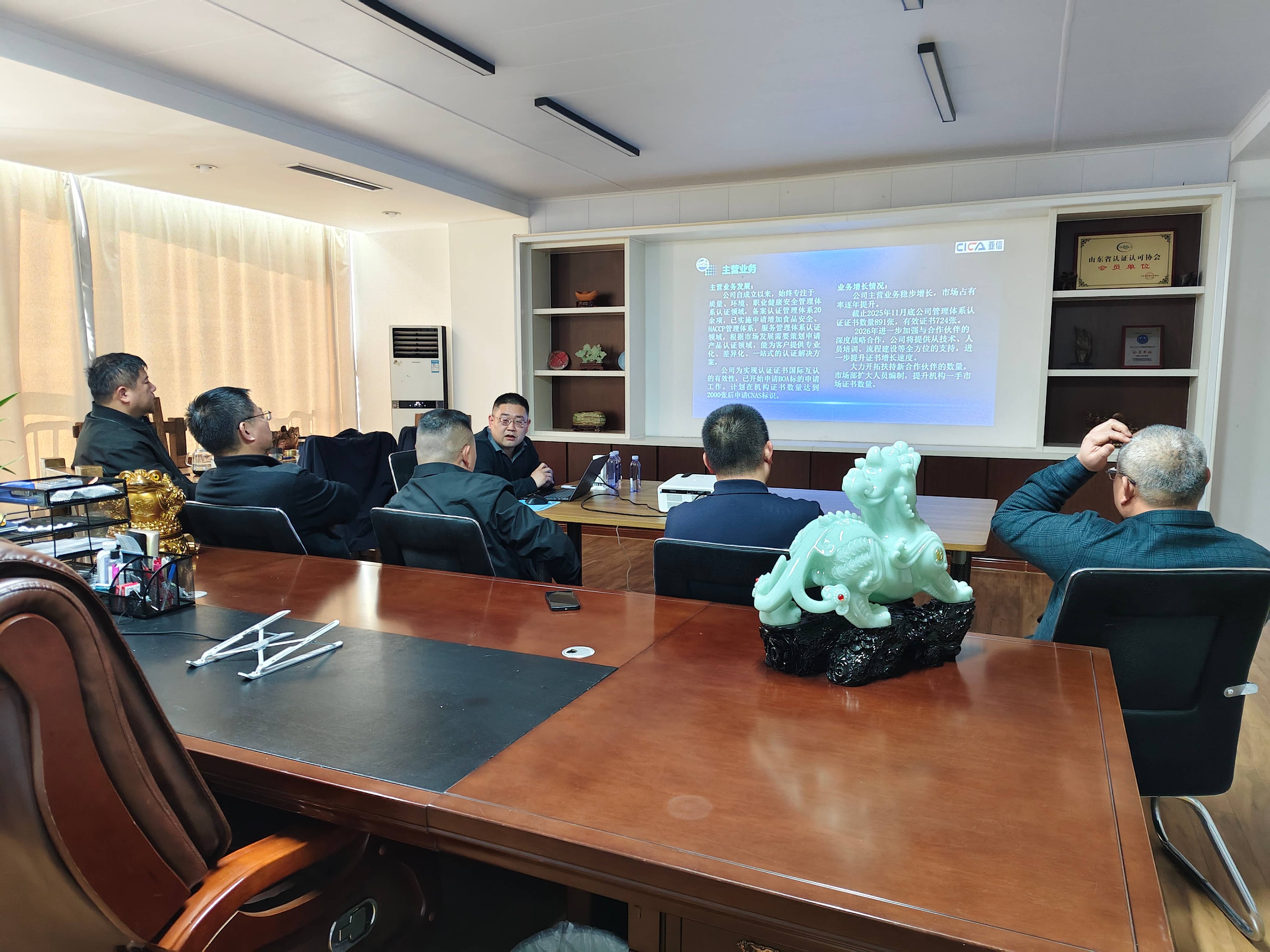 在认真听取汇报后,李总、左总结合行业发展趋势及自身运营经验,分别对我公司业务发展方向、管理优化路径等提出针对性指导意见,同时围绕合作模式、资源互补、协同发展等核心议题展开深入探讨,提出诸多建设性思路。我公司总经理对考察组一行不辞辛劳莅临指导、精准赋能表示衷心感谢,他表示,此次考察指导既是对我公司各项工作的一次全面检阅与精准“体检”,更是为公司高质量发展指明方向、注入动能的重要契机,公司将认真梳理吸收考察组提出的宝贵意见,切实转化为优化管理、提升效能的具体举措。